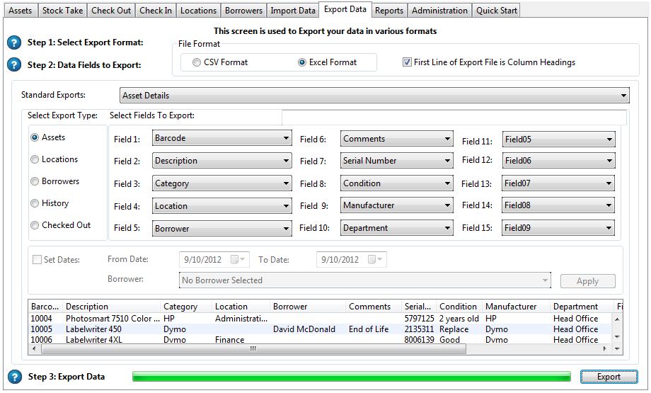 Our software guides you through the process of setting up Locations, Borrowers and Assets.